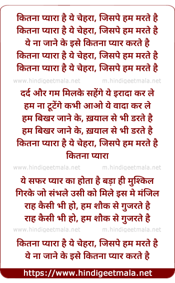 Lyrics of Kitna Pyara Hai Ye Chehra Jispe Hum Marte Hai - कितना प्यारा है ये चेहरा, जिसपे हम मरते है