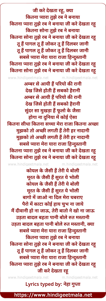 Lyrics of Kitna Pyara Tujhe Rab Ne Banaya - कितना प्यारा तुझे रब ने बनाया