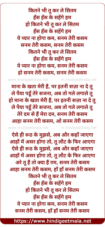 ho sanam teri kasam, sanam teri kasam