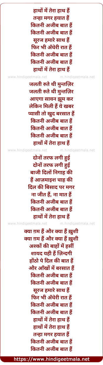 Lyrics of Kitnee Ajeeb Baat Hai - हाथों में तेरा हाथ हैं