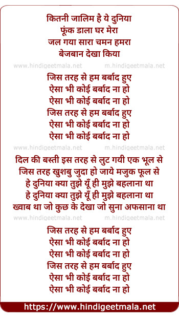 Lyrics of Kitnee Jalim Hai Yeh Duniya - कितनी जालिम है ये दुनिया