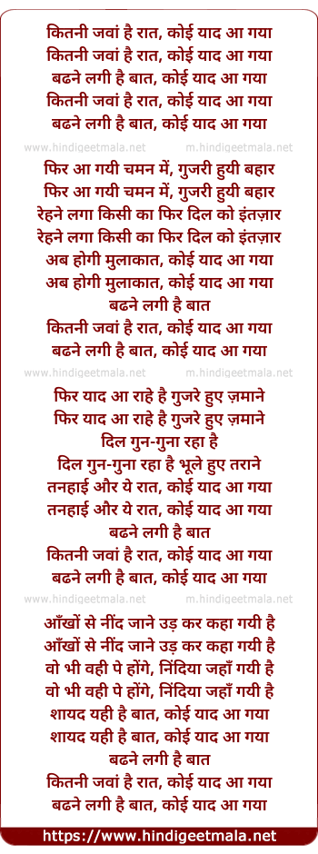 Lyrics of Kitni Javan Hai Rat - कितनी जवां है रात