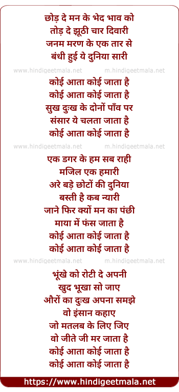 Lyrics of Koi Aata Koi Jaata Hai - कोई आता कोई जाता है