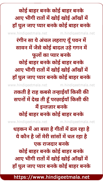 Lyrics of Koi Bahar Banke Aaye - कोई बाहर बनके आये