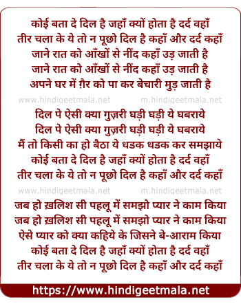 Lyrics of Koi Bata De Dil Hai Jaha Kyu Hota Hai Dard Waha - कोई बता दे दिल है जहाँ क्यों होता है दर्द वहाँ