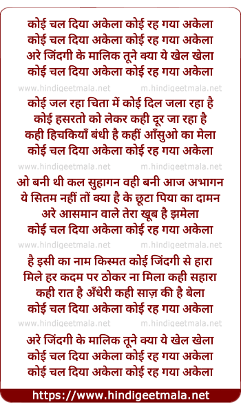 Lyrics of Koi Chal Diya Akela - कोई चल दिया अकेला