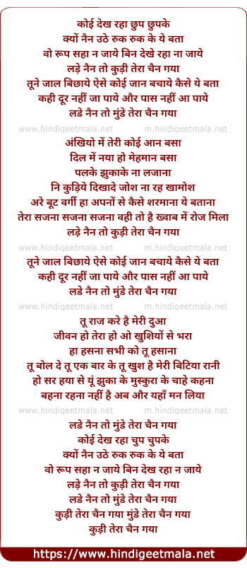 Lyrics of Koi Dekh Raha Chup Chup, Kyu Nain Uthe Ruk Ruk Ke - कोई देख रहा छुप छुप, क्यों नैन उठे रुक रुक के