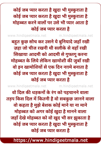 Lyrics of Koi Jab Pyar Karta Hai - कोई जब प्यार करता है