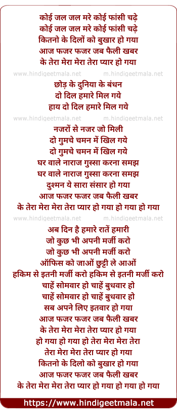 Lyrics of Koi Jal Jal Mare Koi Phansi Chadhe - कोई जल जल मरे कोई फांसी चढ़े