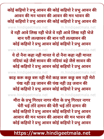 Lyrics of Koi Kahiyo Re Prabhu Aavan Ki - कोई कहियो रे प्रभु आवन की कोई कहियो रे प्रभु आवन की