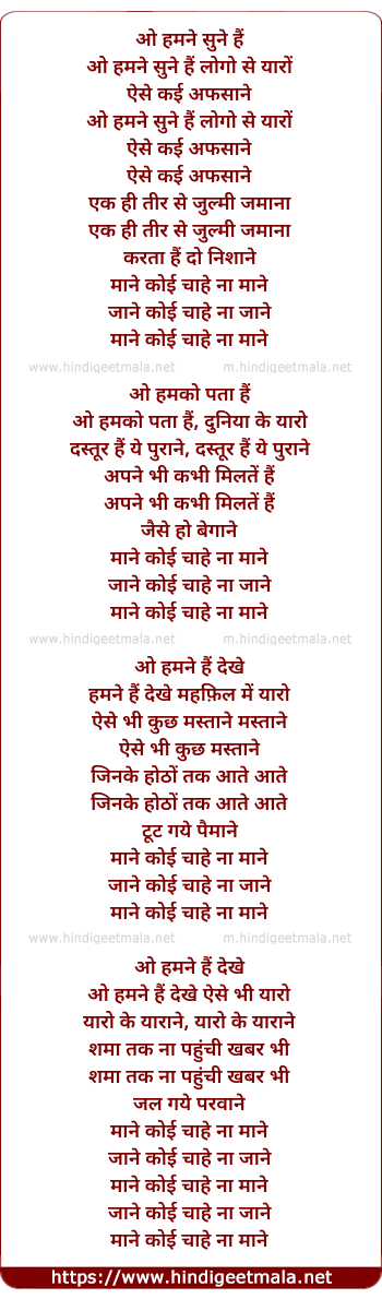 Lyrics of Koi Maane Ya Na Mane - कोई माने या ना माने