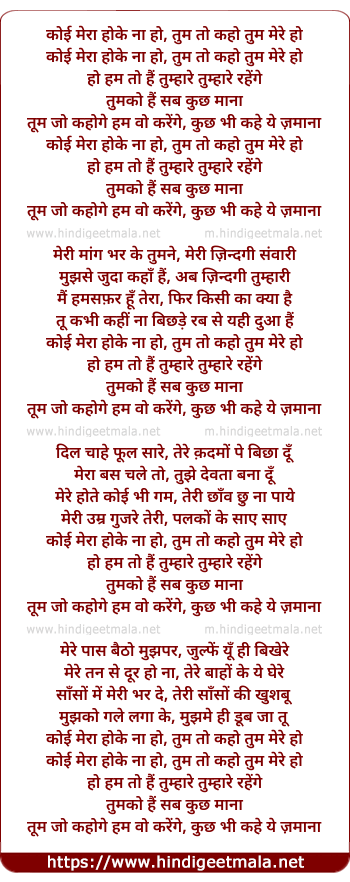 Lyrics of Koi Mera Hoke Na Ho - कोई मेरा होके ना हो