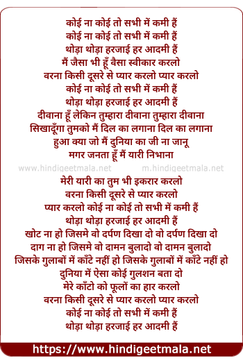 Lyrics of Koi Na Koi To Sabhi Me Kami Hai - कोई ना कोई तो सभी में कमी हैं