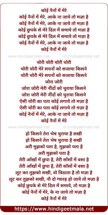 Lyrics of Koi Naino Me Mere Aake Na Jaye - कोई नैनों में मेरे आके ना जाये