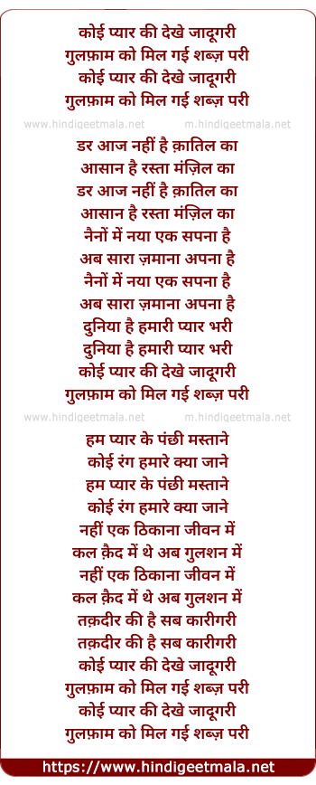 Lyrics of Koi Pyar Ki Dekhe Jadugari - कोई प्यार की देखे जादूगरी