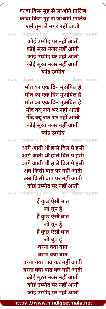 Lyrics of Koi Umeed (Indian) - काबा किस मुह से जाओगे ग़ालिब