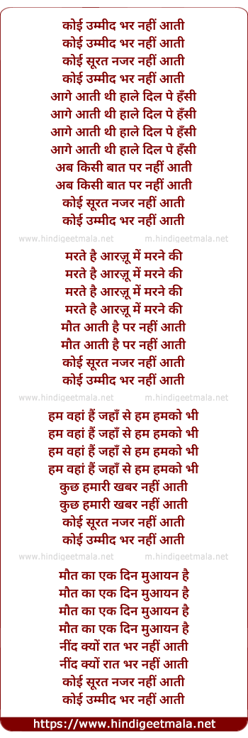 Lyrics of Koi Umeed Na Rakhna Kisi Diwane Se - कोई उम्मीद भर नहीं आती