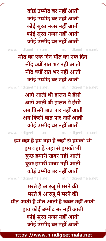 Lyrics of Koi Ummid Bar Nahi Aati - कोई उम्मीद बर नहीं आती