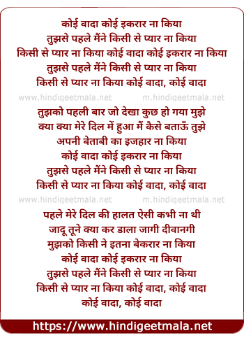 Lyrics of Koi Vada Koi Iqraar Na Kiya - कोई वादा कोई इकरार ना किया