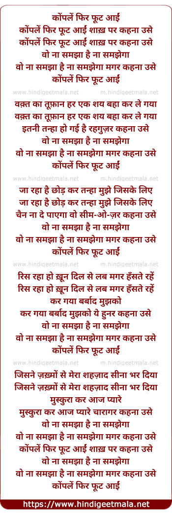 Lyrics of Konpale Phir Phut Aayee Shak Par Kahana Use - कोंपलें फिर फूट आईं