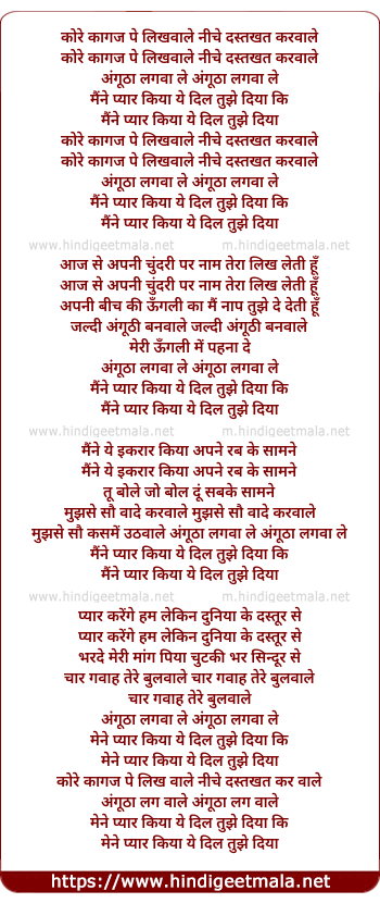 Lyrics of Kore Kagaz Pe Likhwale - कोरे कागज पे लिखवाले