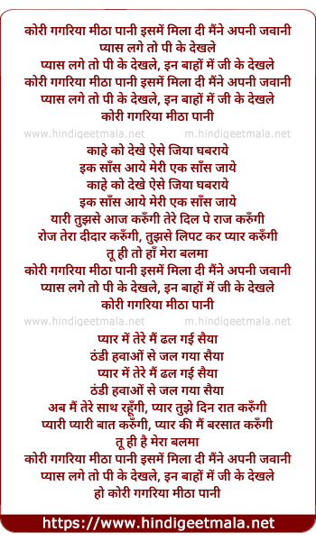 Lyrics of Kori Gagriya Mitha Pani Isme Mil Di - कोरी गगरिया मीठा पानी इसमें मिला दी
