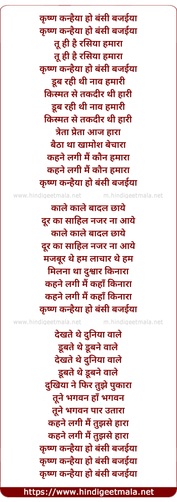 Lyrics of Krishna Kanhaiyya Bansi Bajaiyya - कृष्ण कन्हैया हो बंसी बजईया