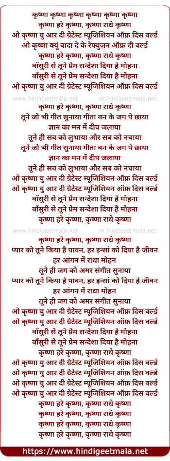 Lyrics of Krishna You Are The Greatest Musician - कृष्णा यु आर दी ग्रेटेस्ट म्यूजिशियन