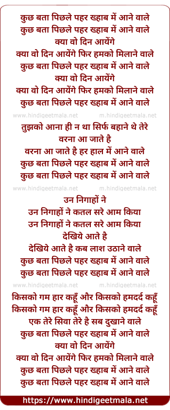 kuchh bata pichale pehar khahab me aane waale