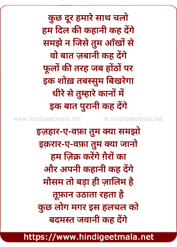 Poetic Translation - Lyrics of Kuch Dur (Hariharan) - कुछ दूर