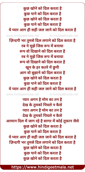 Lyrics of Kuch Khone Ko Dil Karta Hai - कुछ खोने को दिल करता है