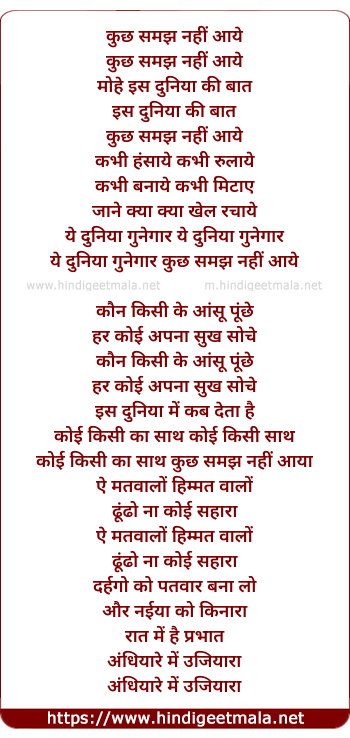 Lyrics of Kuch Samajh Nahi Aaye Mohe Iss Duniya Ki Baat - कुछ समझ नहीं आये मोहे इस दुनिया की बात