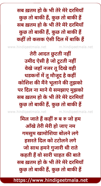 sab khatam ho ke bhi tere mere darmiya
