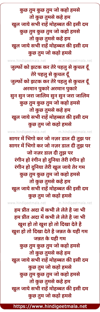 Lyrics of Kuch Tum Jo Kaho Humse - कुछ तुम जो कहो हमसे