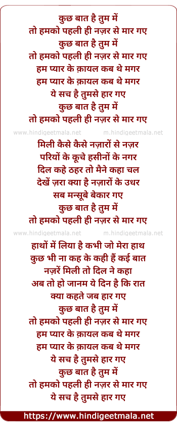 Lyrics of Kuch Bat Hai Tum Me - कुछ बात है तुम में