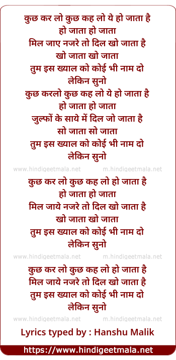 Lyrics of Kuchh Kar Lo, Kuchh Keh Lo - कुछ कर लो, कुछ कह लो