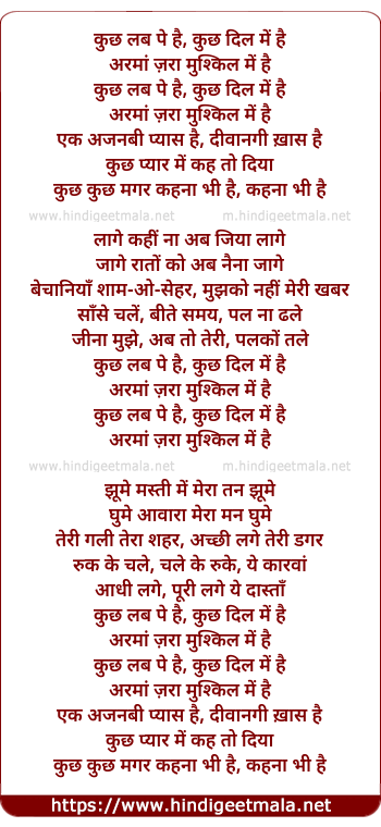 Lyrics of Kuchh Lab Pe Hai Kuchh Dil Mein Hai - कुछ लब पे है कुछ दिल में है