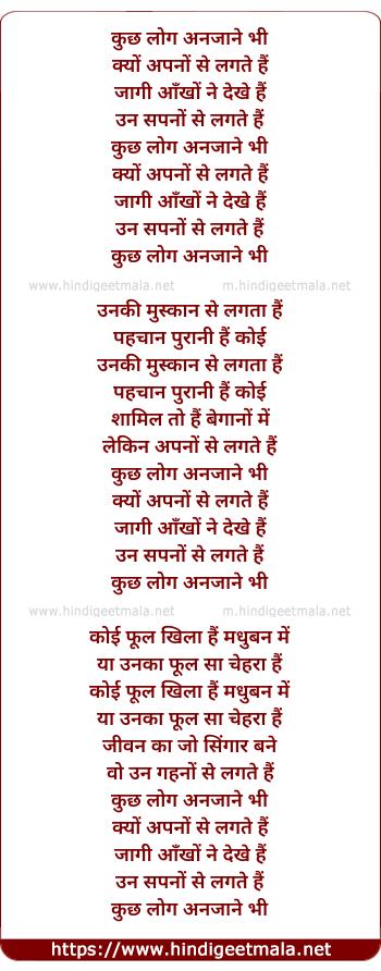 Lyrics of Kuchh Log Anjane Bhi - कुछ लोग अनजाने भी