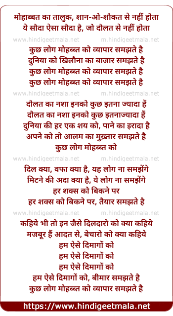 Lyrics of Kuchh Log Mohabbat Ko - कुछ लोग मोहब्ब्त को
