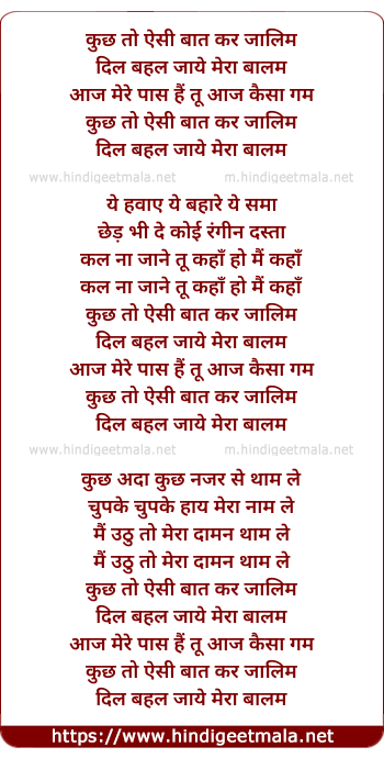 Lyrics of Kuchh To Aisi Baat Kar Zalim - कुछ तो ऐसी बात कर जालिम