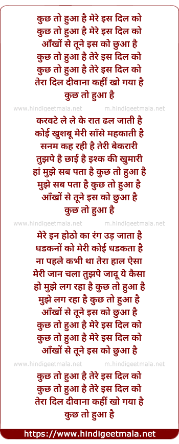 Lyrics of Kuchh To Huwa Hai Mere Is Dil Ko - कुछ तो हुआ है मेरे इस दिल को