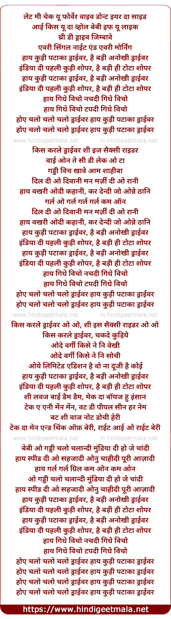 Lyrics of Kudi Pataka Driver, Badi Anokhi Driver - कुड़ी पटाका ड्राईवर, बड़ी अनोखी ड्राईवर