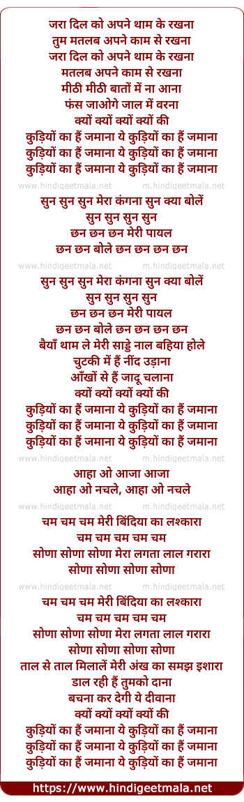 Lyrics of Kudiyon Ka Hai Zamana - कुड़ियों का हैं जमाना