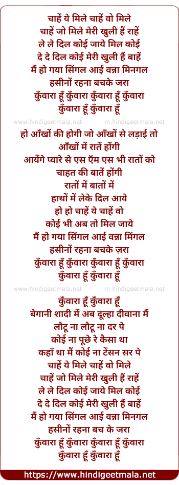 Lyrics of Kunwara Hoon Kunwara - कुँवारा हूँ कुँवारा