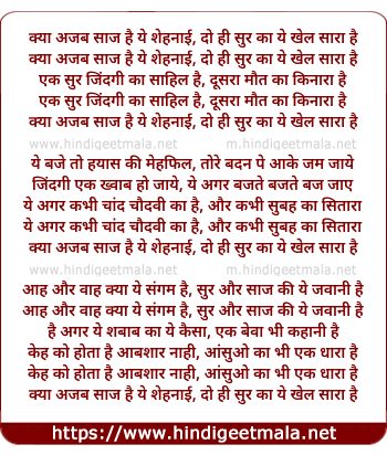 Lyrics of Kya Ajab Saaz Hai Ye Shehnai - क्या अजब साज है ये शहनाई