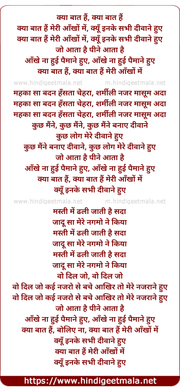 kya baat hai meri aankho me, kyun inke sabhi deewane huye