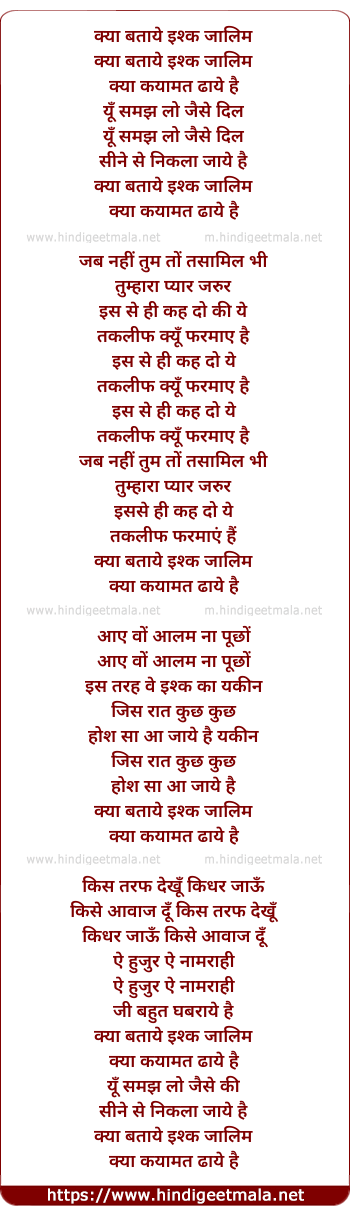 Lyrics of Kya Bataye Ishq Zalim - क्या बताये इश्क जालिम