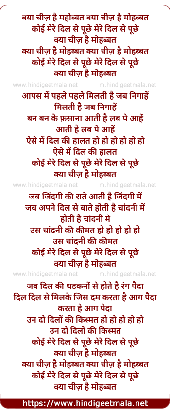 Lyrics of Kya Cheez Hai Mohabbat - क्या चीज़ है महोब्बत