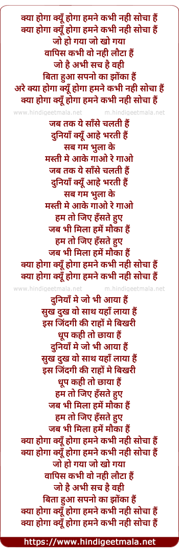 kya hoga kyu hoga hamne kabhi nahi socha hai