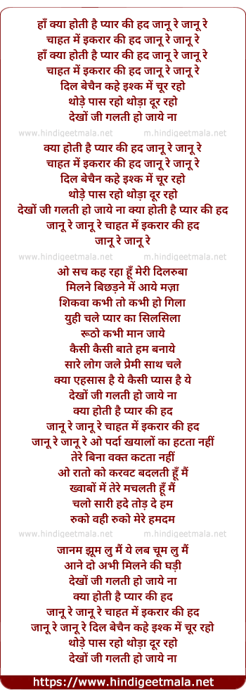 chahat me ikrar ki hadh janu re janu re